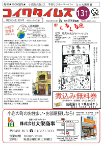 東京都江戸川区、しかも「小岩」限定(笑)!のフリーペーパー「コイワタイムズ」 小岩の街を愛する方々が記事を書いています。かなりクセがありますが、読んでいるうちにあなたもきっとハマります(*^_^*)♪