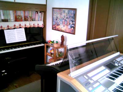 レッスン室2・・アップライトピアノ、エレクトーン(ステージアELS-01C、EL-900)